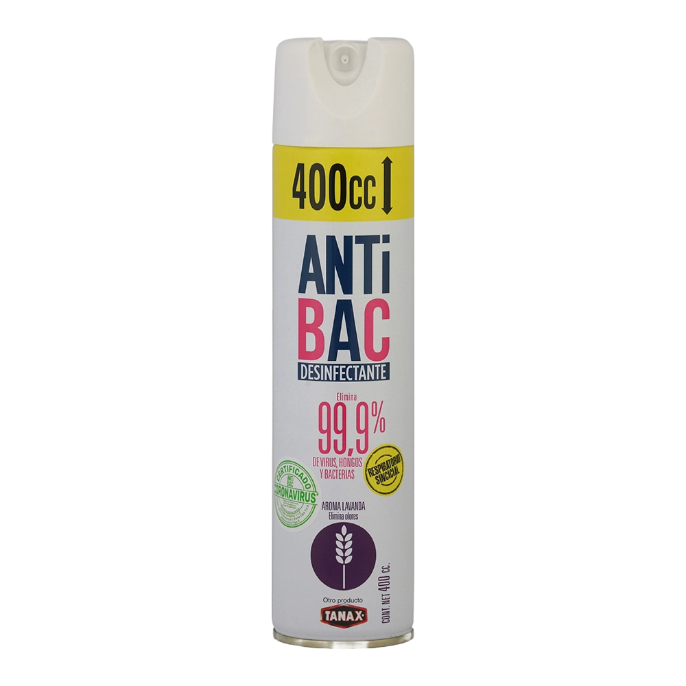 Modo de uso: Pulverizar en el ambiente o directamente sobre la superficie a tratar. Dejar actuar unos segundos y limpiar con paño. ANTIBAC Desinfecta ambientes, superficies y elimina hongos que producen malos olores.