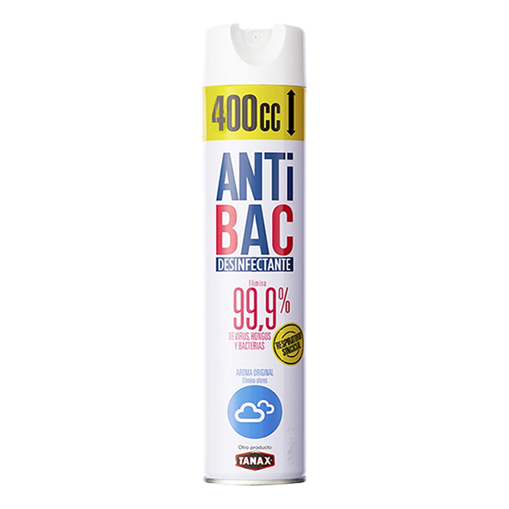 Modo de uso: Pulverizar en el ambiente o directamente sobre la superficie a tratar. Dejar actuar unos segundos y limpiar con paño. ANTIBAC Desinfecta ambientes, superficies y elimina hongos que producen malos olores.